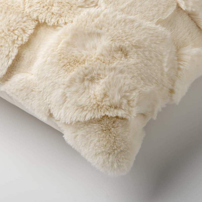 OverzichtKussen van het merk Dutch Decor van imitatiebont met een hoogpolig patroon in de kleur Cannoli Cream (offwhite)